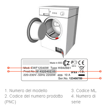 Tutti gli elettrodomestici dispongono, seppur talvolta in zone poco accessibili, di una targhetta come quella qui sopra che riporta le informazioni di cui necessitiamo.